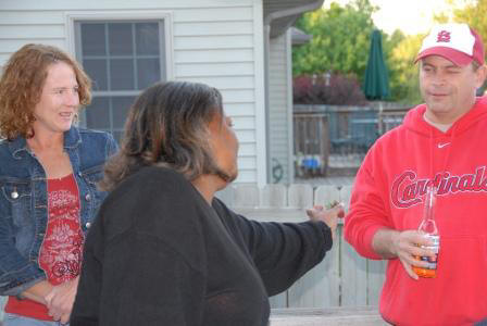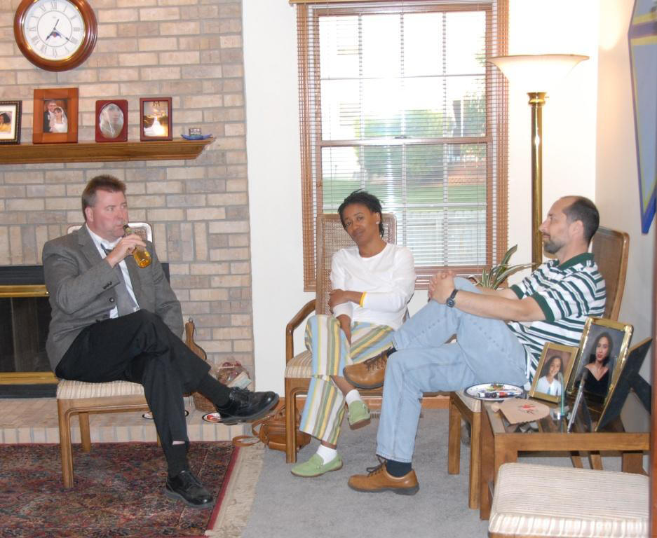 Charmaine talking with Lisa and her boyfriend, my dearest cousin -- firefighter Lt. Enyo Dewith.