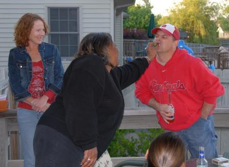 And the same goes for Letitia's husband, Bill. Bill has a rare form of what used to be considered solely a children's cancer. Diagnosed over three years ago and given basically no chance of survival... Bill jogs and goes to work every day despite his rigorous schedule of chemotherapy and other strength depleting treatments -- he's been doing that for over three years now! When Bill smiles you feel it. When Bill laughs you laugh... even if you don't know what he's laughing about... because it just feels so good to be around someone with so much heart and soul.. and, LOVE. I have never heard Bill complain. At the party his eye was blackened and he was going to the doctor the following day to see what it was all about. He wasn't worried. I wasn't either. Because he wasn't. And it came out to be all good! I am loving you Bill Anderson.