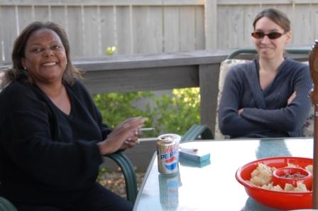 Ryan (our daughter's boyfriend) Carter and Bill talk in the background as the author and Godchild Alison conjure up some "Juicy Fruit." My sister Cheyenne seems to be making sure no one sneaks up on us... LOL. I can hear saying to me now... "Why are you so bad!"