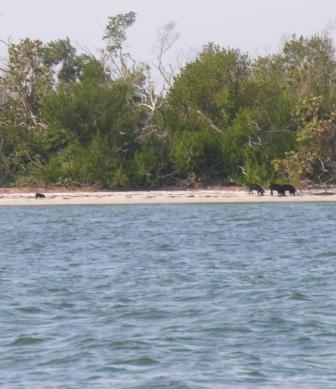 Pigs or wild boars on the sandy beach of Cayo Costa.