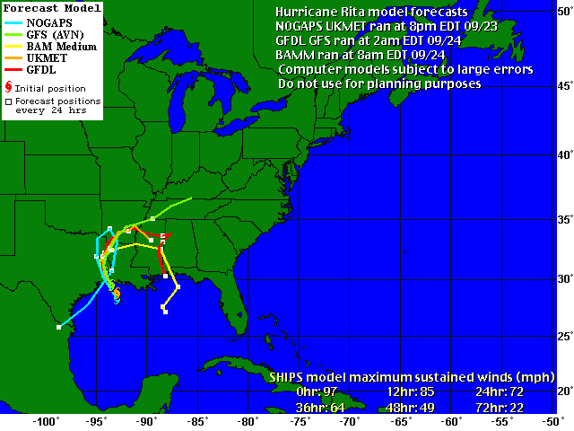 Who would think 2005's hurricane season could rival last year's madness? Max Mayfield, that's who! Hurricanes Dennis, Emily, Katrina, and now Rita have crossed our paths one way or another this wicked hurricane season. Rita is on her way to the Gulf Coast as I type this. She just left the Keys. I'm just putting in all the correspondence during that time right now, no order except chronological -- unless it's a reply to a specific email, then it's paired with the original email.