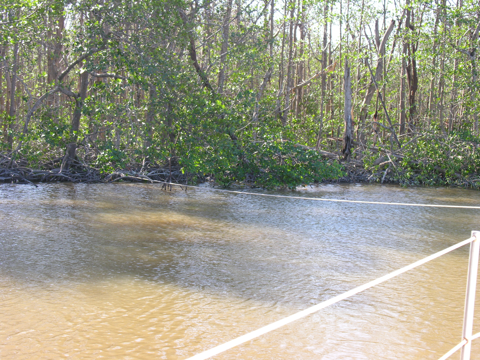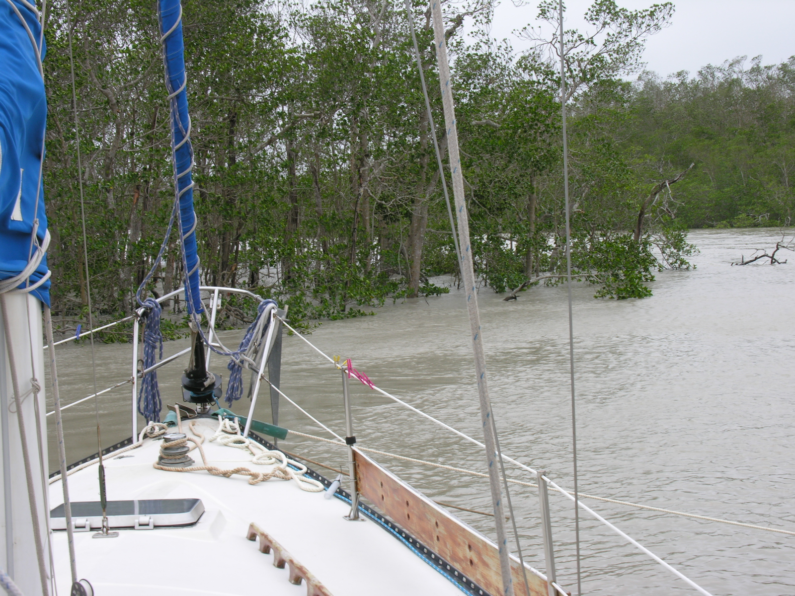 In Little Shark, we'd found a great spot years ago. Nestled deep within the maze of the mangroves. Tall mangroves on all sides, groves with mangroves near 60 feet tall. We've used that same spot to ride out Hurricanes Charley and Ivan in 2004, and as bad as this 2005 season has been, we've retreated to Little Shark only once this year (so far... knock on something!!) and that was to await the arrival of Hurricane Wilma.