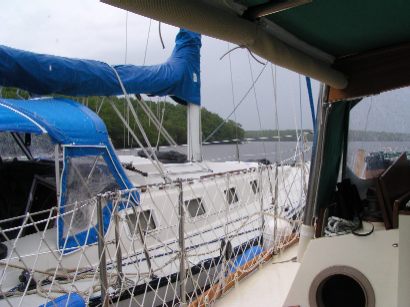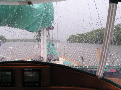Below: Rain falls on s/v Drummer.