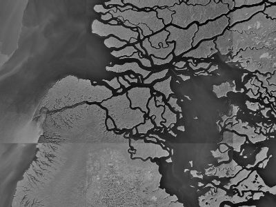 off many times to reveal small lakes inside. These lake areas