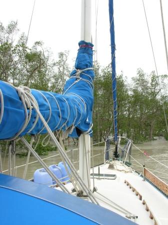 Tied up Super Snug for Hurricane Charley.