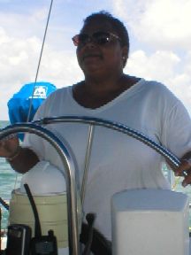 Below, Charmaine at the helm.