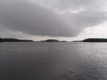 Tied up for Hurricane Wilma.. we've already endured lots of surge and wind. You can see the 15 foot surge in Little Shark River. Normally you should be seeing land where the mangrove are. LOTS of land.