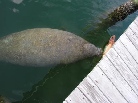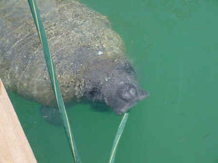 A cruising couple had this manatee at their boat; but once told of the dangers of allowing it to drink from the hose, they immediately stopped supplying it with water.