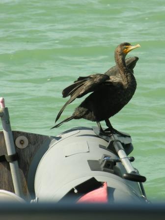 This little cutie decided to dry out his wings while perched on our dinghy.